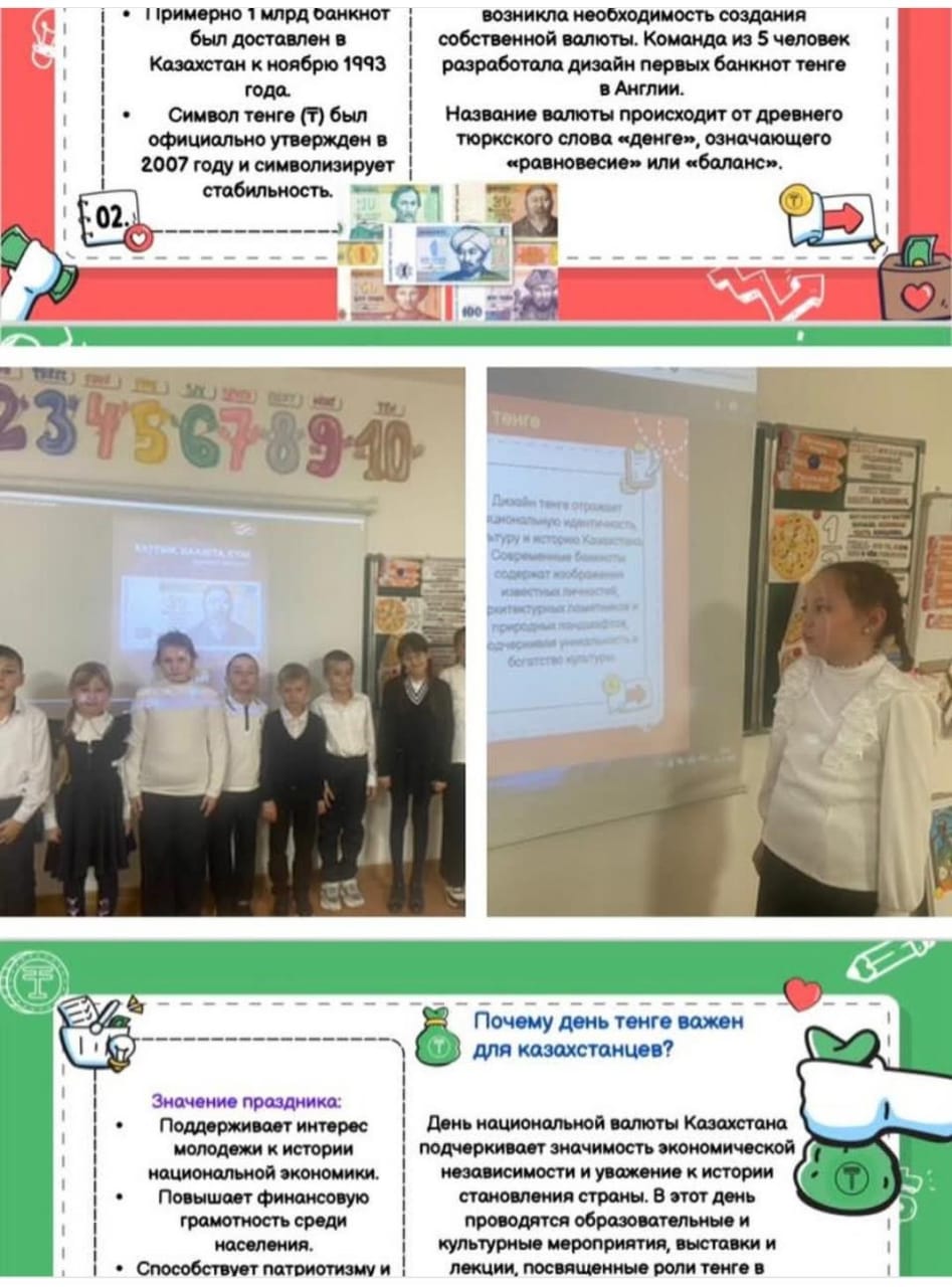 В честь Дня национальной валюты Республики Казахстан — тенге в 3 классе прошёл познавательный классный час под девизом «Тенге — опора независимости».
