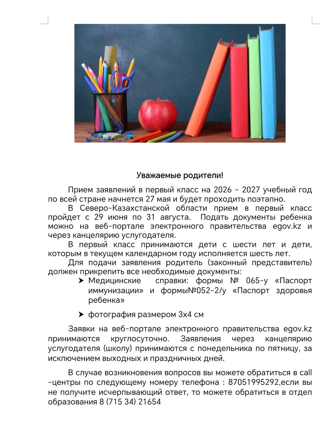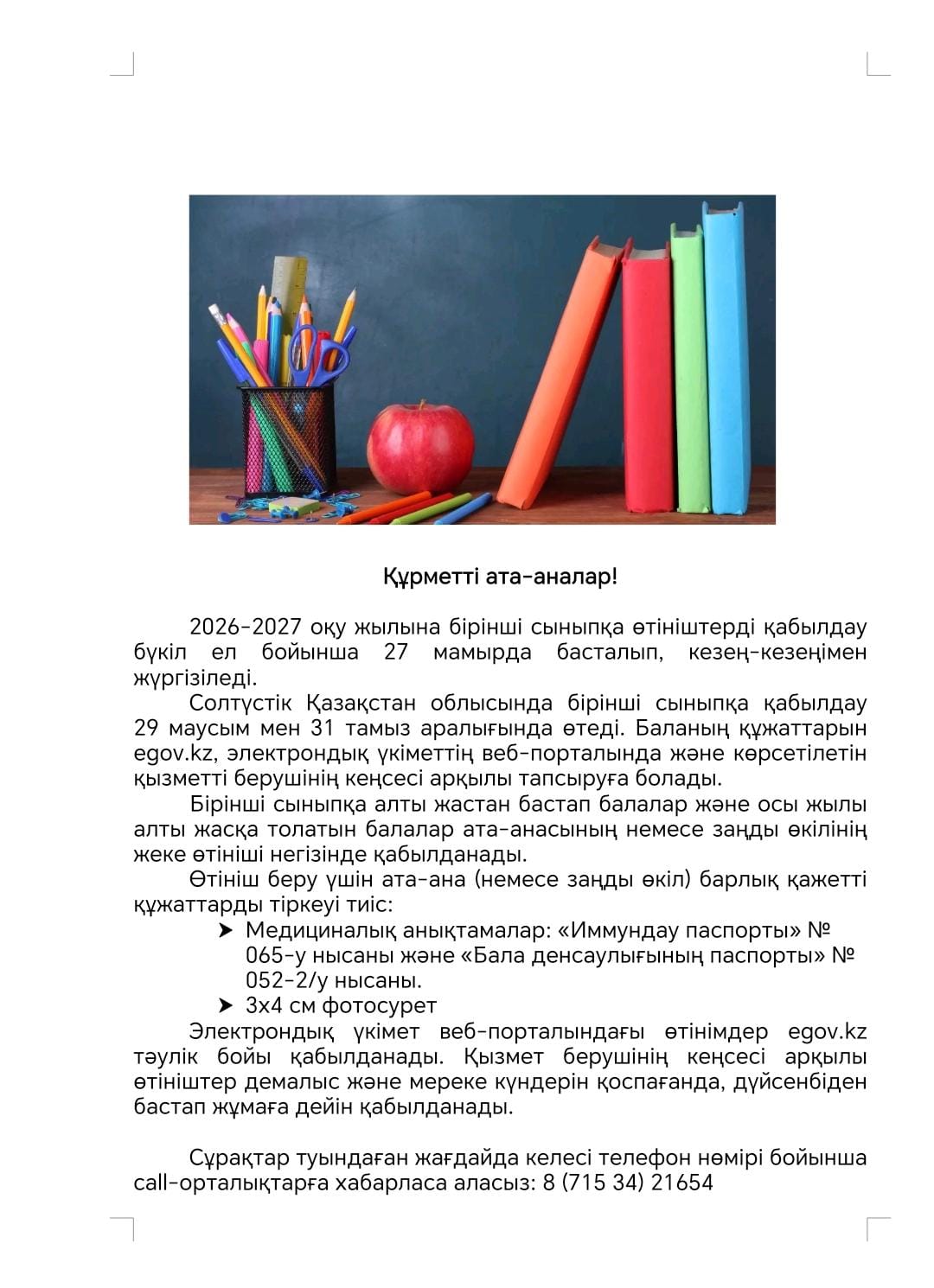 Единый контакт-центр по вопросам оказания государственных услуг 1414, 8-800-080-7777, также можно обратиться в приемную КГУ "Мергенская основная средняя школа", где расположен стенд с информацией по государственным услугам, а также уголок самообслуживания.Обращаться по номеру: 8-(71534) -5-10-90